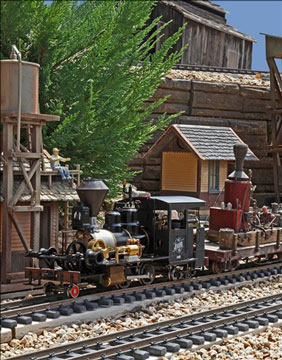 WIZELMAN: No special era. I am attracted to many different time periods and themes. The first loco I built was a logging locomotive used to take the trees from the forest to the mill. I built many logging related things. The earliest model I have debuted in 1830 on the B & O Railroad. It was one of the very first passenger locomotives. I even built a trolley locomotive that really got power from a trolley pole. Of course I had to steam power it.