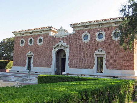 Noted architect Robert D. Farquhar, FAIA (1872 – 1967) designed the library, while distinguished landscape architect Ralph Cornell (1890 – 1972) created the formal garden that surrounds it. In addition to the Clark, Farquhar was responsible for such well known local projects as Beverly Hills High School (1926 – 1927), the Adalbert and Eva Scott Fenyes House (built in 1906 and currently the home of the Pasadena Museum of History) and the Canfield-Moreno Estate (1923) located in Silver Lake, which is named after its original owners, silent film star Antonio Moreno and his socialite wife and oil heiress, Daisy Canfield Danziger. Farquhar also designed the Clark Mausoleum (1922), whose most notable resident is William Andrews Clark Jr. himself. The mausoleum is located on its own island in what’s now called the Hollywood Forever Cemetery.