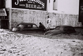 An unknown boy is out exploring his neighborhood (most likely Highland Park) during the flood of 1938. Photo: Don Hall, Sr. via shorpy.com.