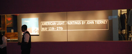 Last Thursday night I attended the opening of American Light: Paintings by John Tierney at the Paul Smith shop on Melrose. Unlike other art events I’ve experienced in the past, this one had a decidedly Hollywood / fashion industry vide. As the invitation only crowd browsed Paul Smith’s latest collection, waiters clad in all black served wine and British beer to the artist and his son Ben, Alan Aldridge, Josh Duhamel, Stacy Ferguson (aka Fergie), Ryan Philippe, Diana Aragon, Abbie Cornish and Mira Sorvino, among many others.